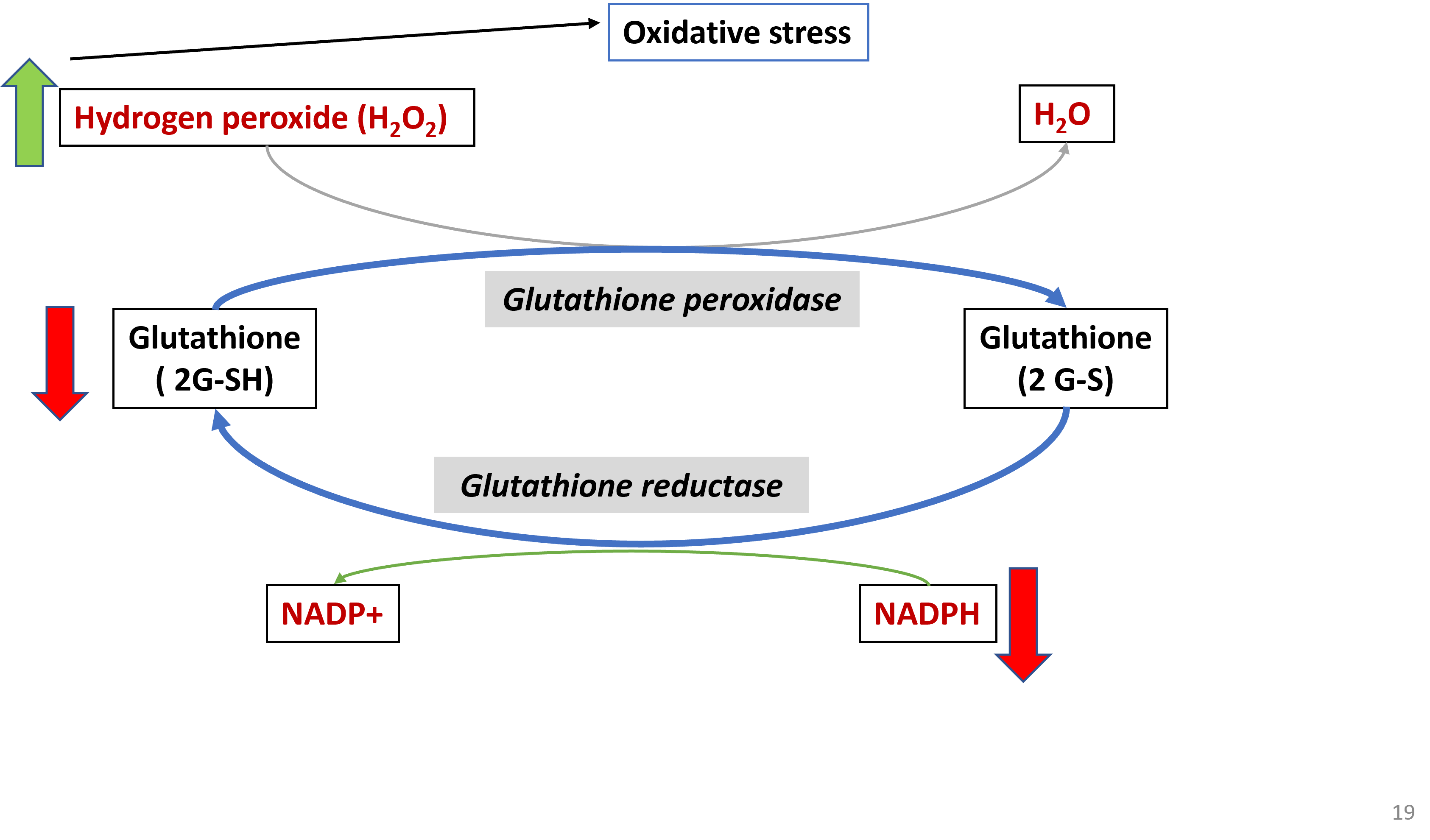 Hydrogen peroxide is a highly reactive oxygen containing molecule that can destroy the contents of the cell by oxidation. Hydrogen peroxide is produced during several physiological processes and due to environmental factors, such as ionizing radiation, pollutants and drugs. Hydrogen peroxide and other such highly reactive oxidants are neutralized by anti-oxidant systems including the Glutathione peroxidase system.