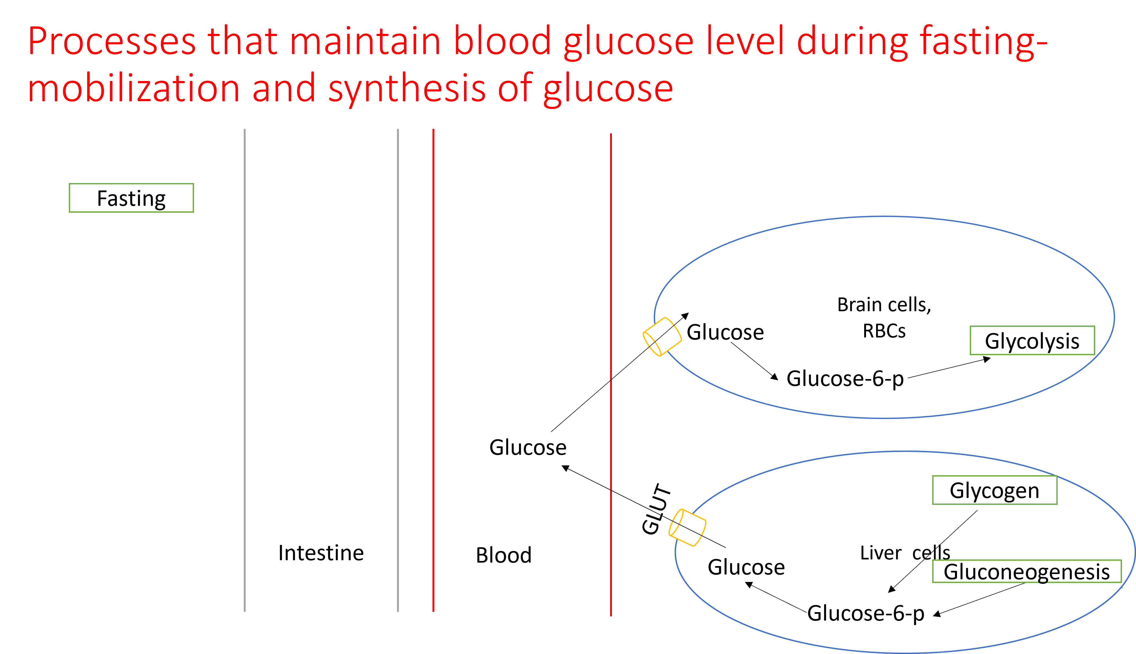 Blood glucose level is maintained within this narrow range by processes that utilize glucose during feeding and processes that mobilize and synthesize glucose fasting./